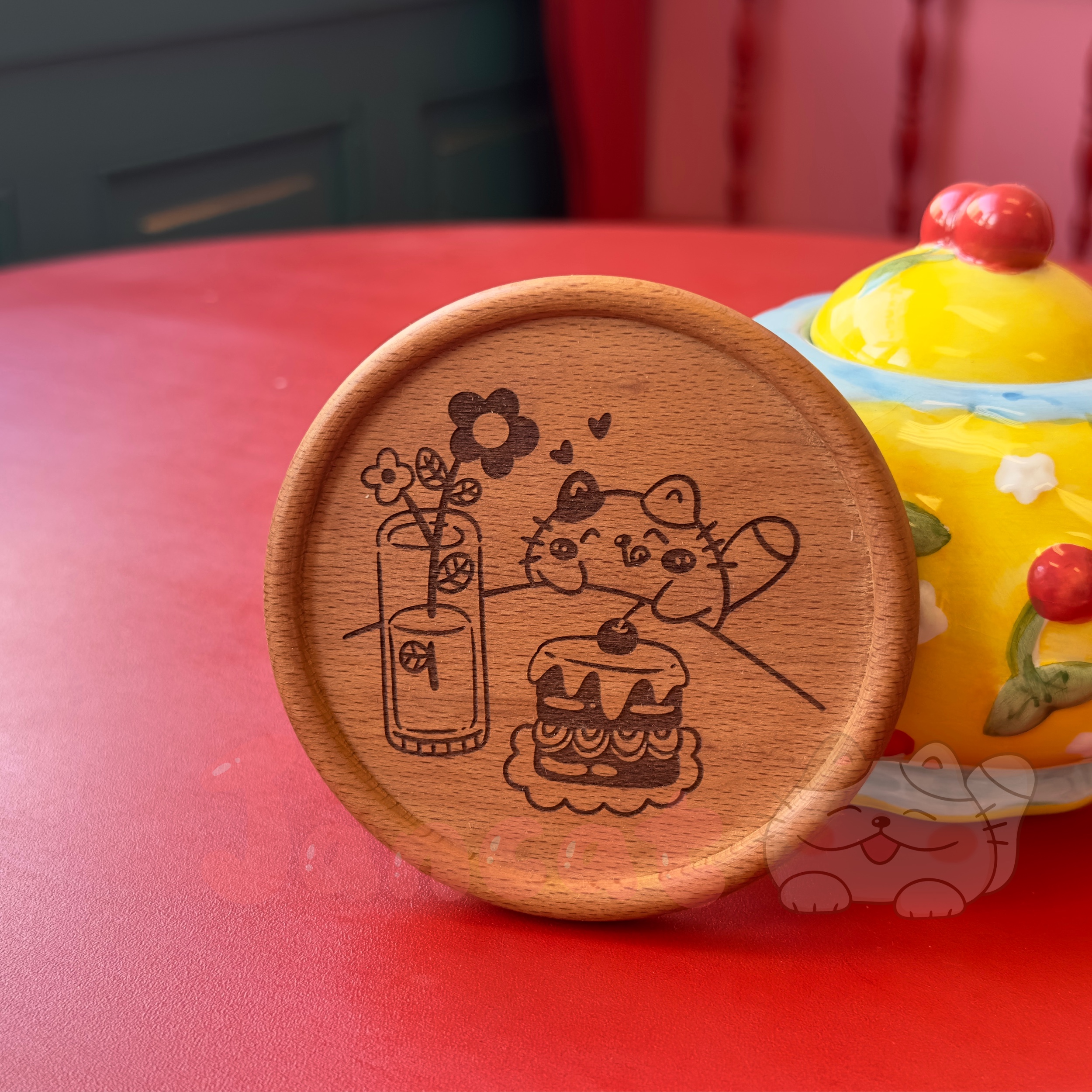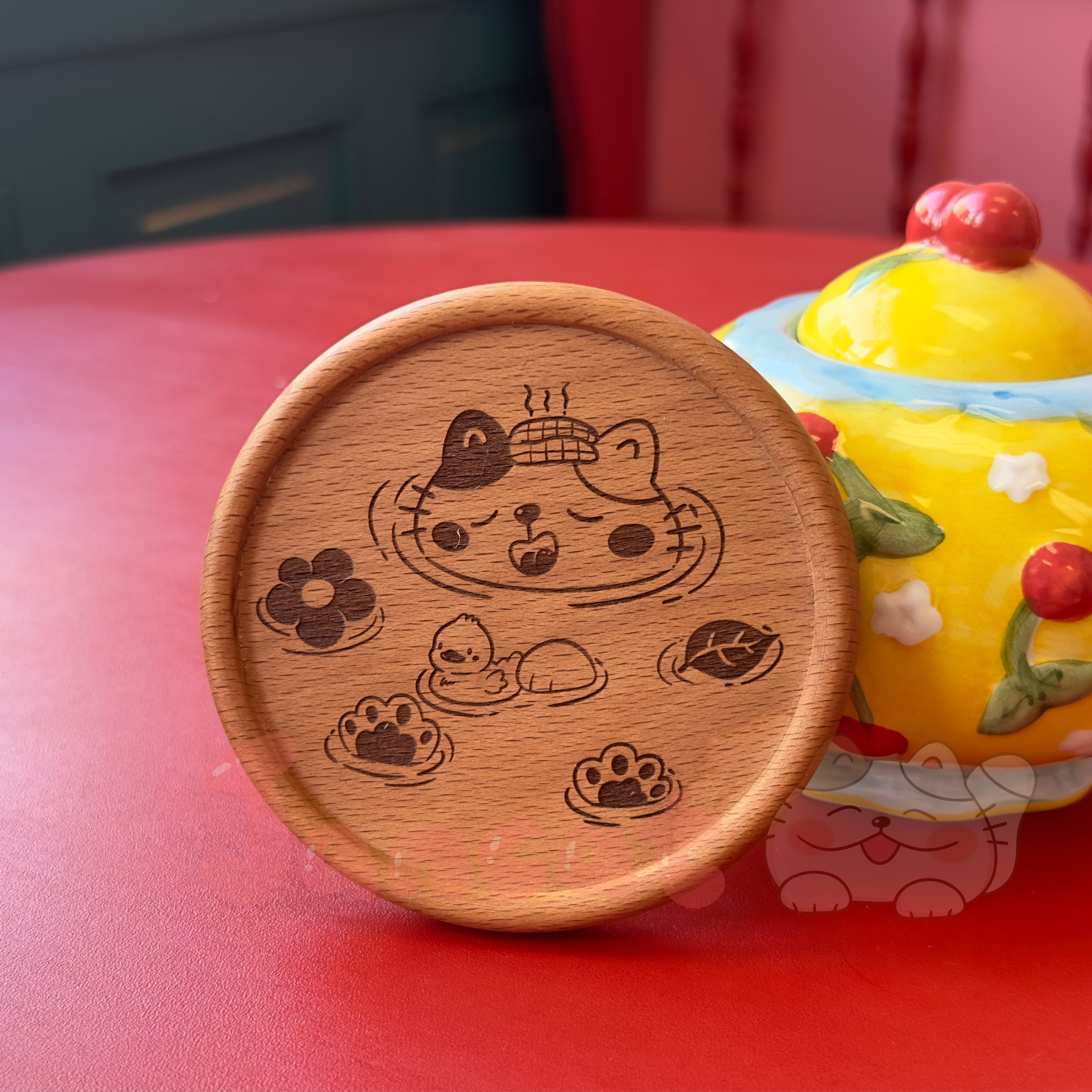 Our coasters are handmade with LOVE ♡ - Size: 10cm - Original Jancat design - Engraved in Jancat Art Studio - Handwash only Designed & Illustrated by Jancat Art Colours may differ on monitor screens due to different settings