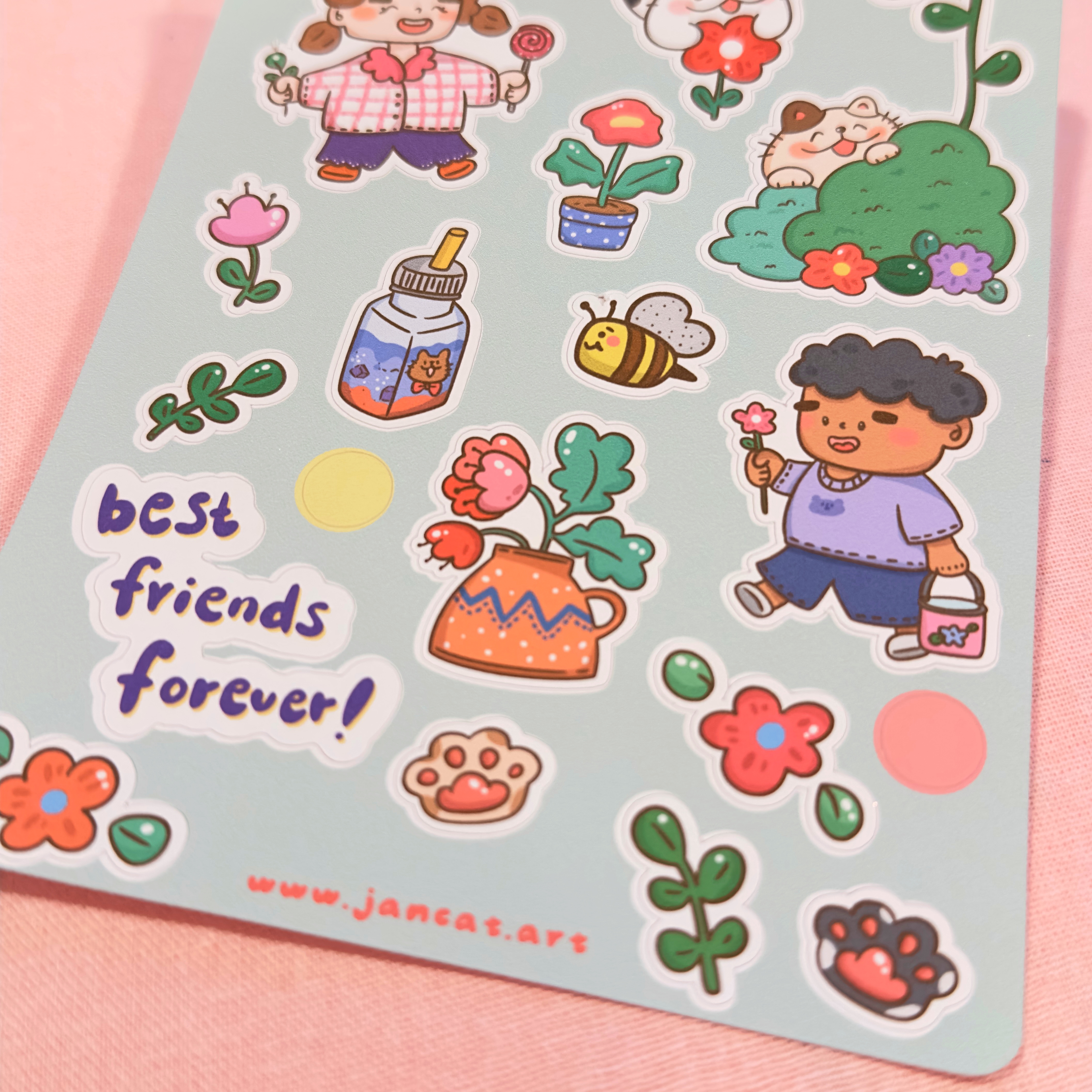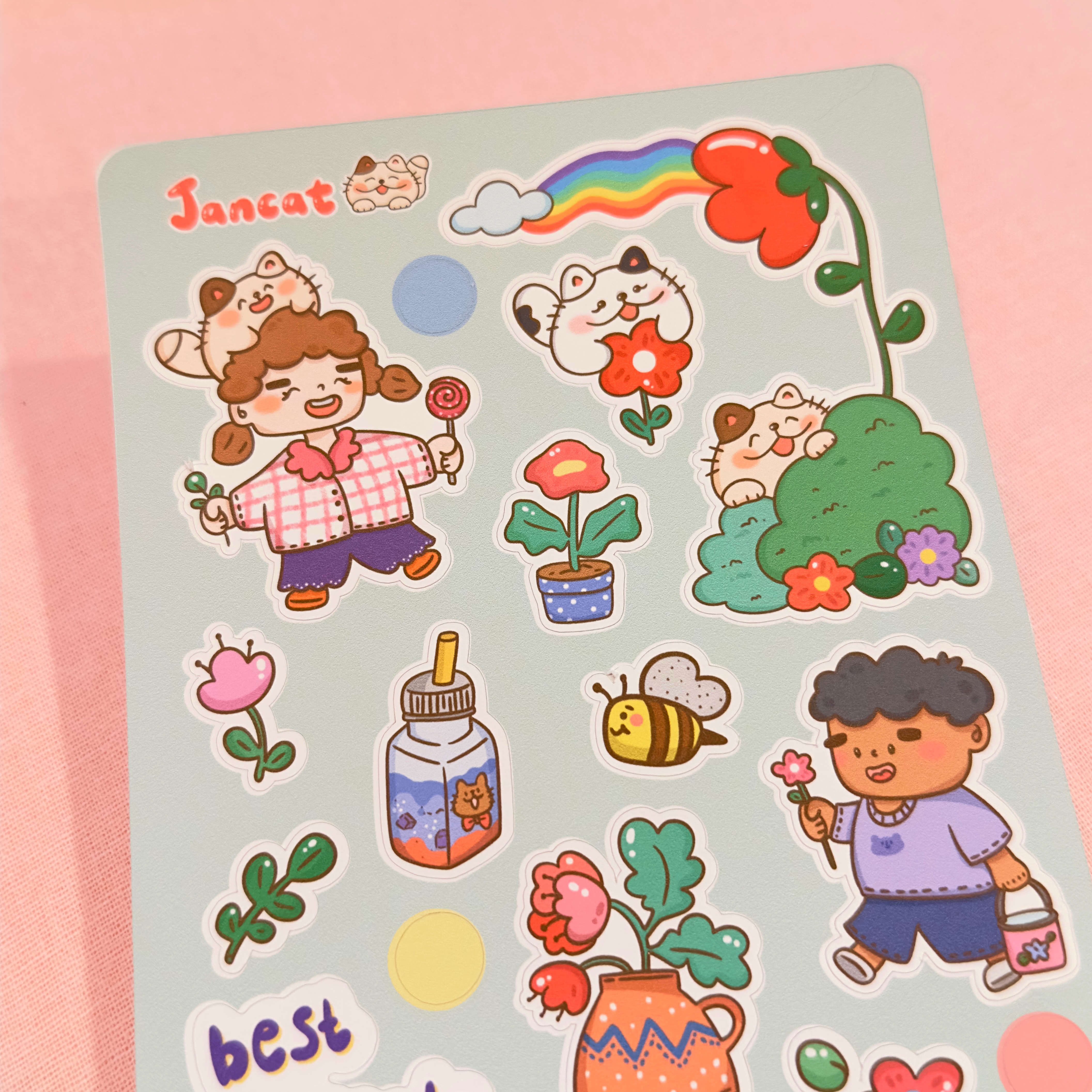 Our stickers are fully handmade for you with LOVE ♡ - We offer both waterproof and non-waterproof sticker sheet - Both printed with pigment ink - Size: 4 inches x 6 inches Designed & Illustrated by Jancat Art Colours may differ on monitor screens due to different settings