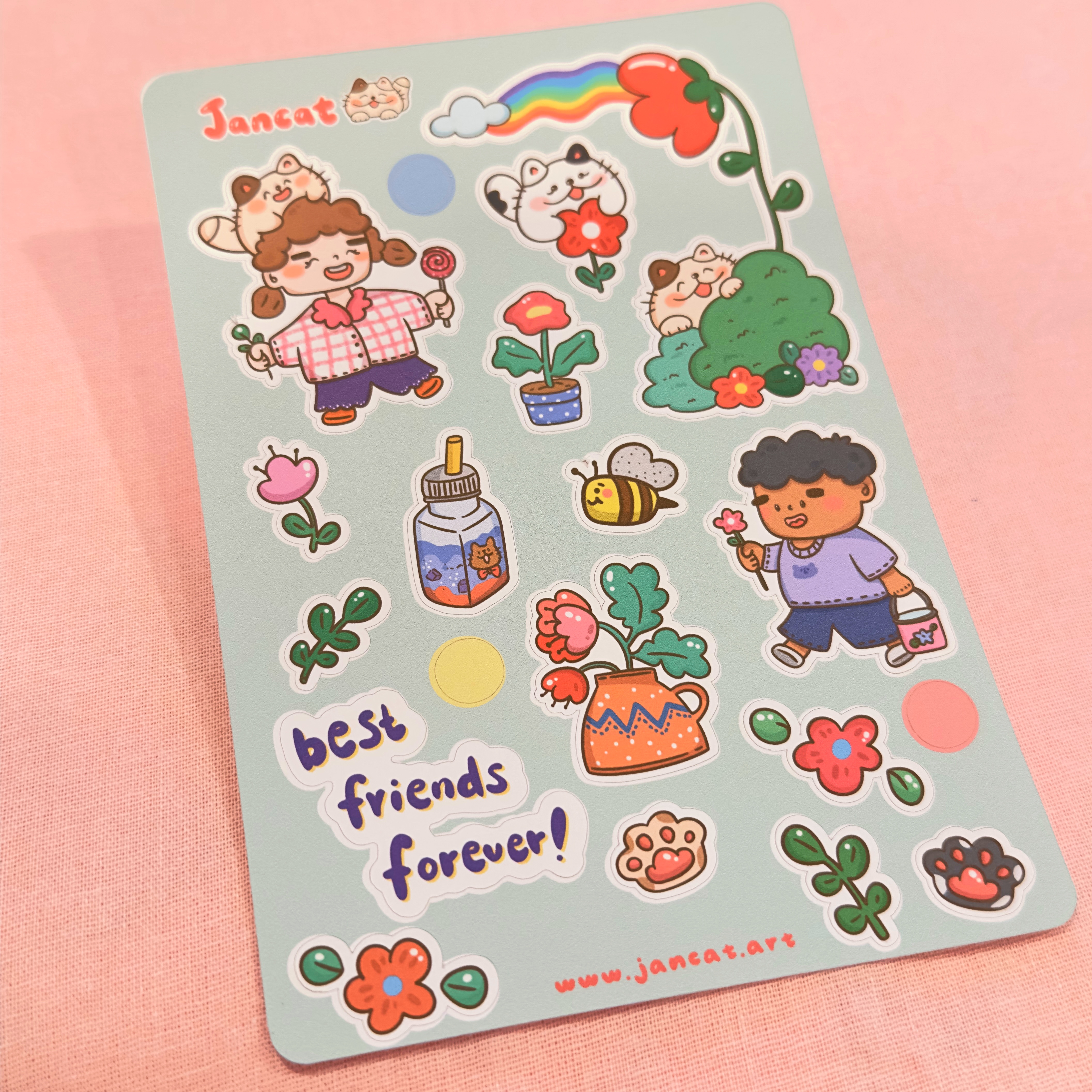 Our stickers are fully handmade for you with LOVE ♡ - We offer both waterproof and non-waterproof sticker sheet - Both printed with pigment ink - Size: 4 inches x 6 inches Designed & Illustrated by Jancat Art Colours may differ on monitor screens due to different settings